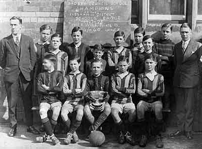 Football success. "In January 1920, Mr Amos began a Football Club, with the full support of the Managers. It was felt that a start should be made in this direction, even though organised games were not recognised by HMI as officially part of the school curriculum until several years later. By February 1920, they were ready to start competing against other schools, the first match being against Bretforton. ... The Badsey boys quickly proved themselves and in April 1921 were the first winners of the Evesham & District Schools’ League, winning by a margin of 13 points." - Maureen Spinks in Heads and Tales.
