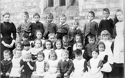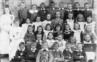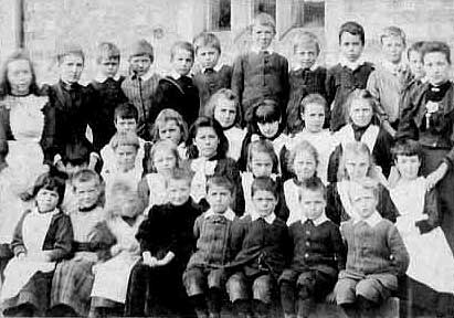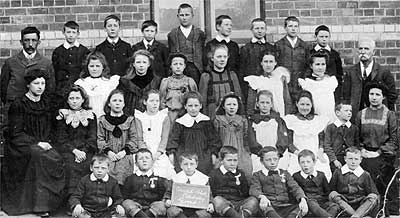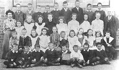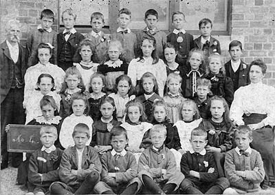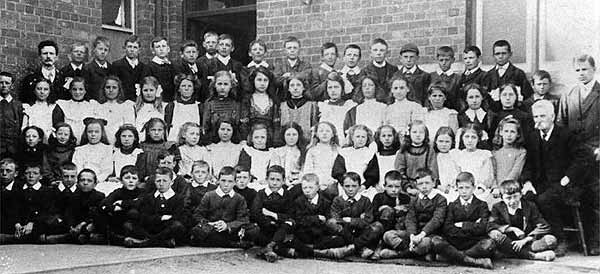 Class photo, late 1890s. A group of older children with Mr McDonald seated right. Loaned by Sue Daniels.