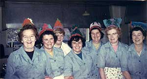 Badsey School kitchen staff. Christmas 1966. A party for the children.