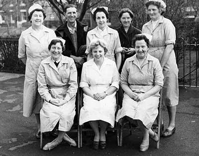 Back row left to right: Ve.Martin, Roy Hall (caretaker), Mrs Hartwell, Mrs Clovelly,